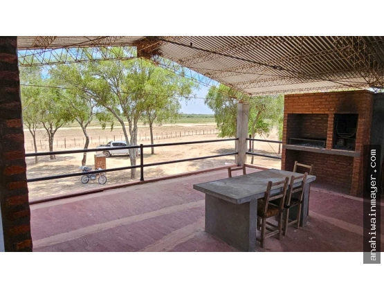 Casco de la Estancia: Podrás identificar las construcciones (casa principal y de encargado) que mencionaste, situadas estratégicamente cerca del acceso para aprovechar el tendido de luz eléctrica que corre paralelo a la ruta.